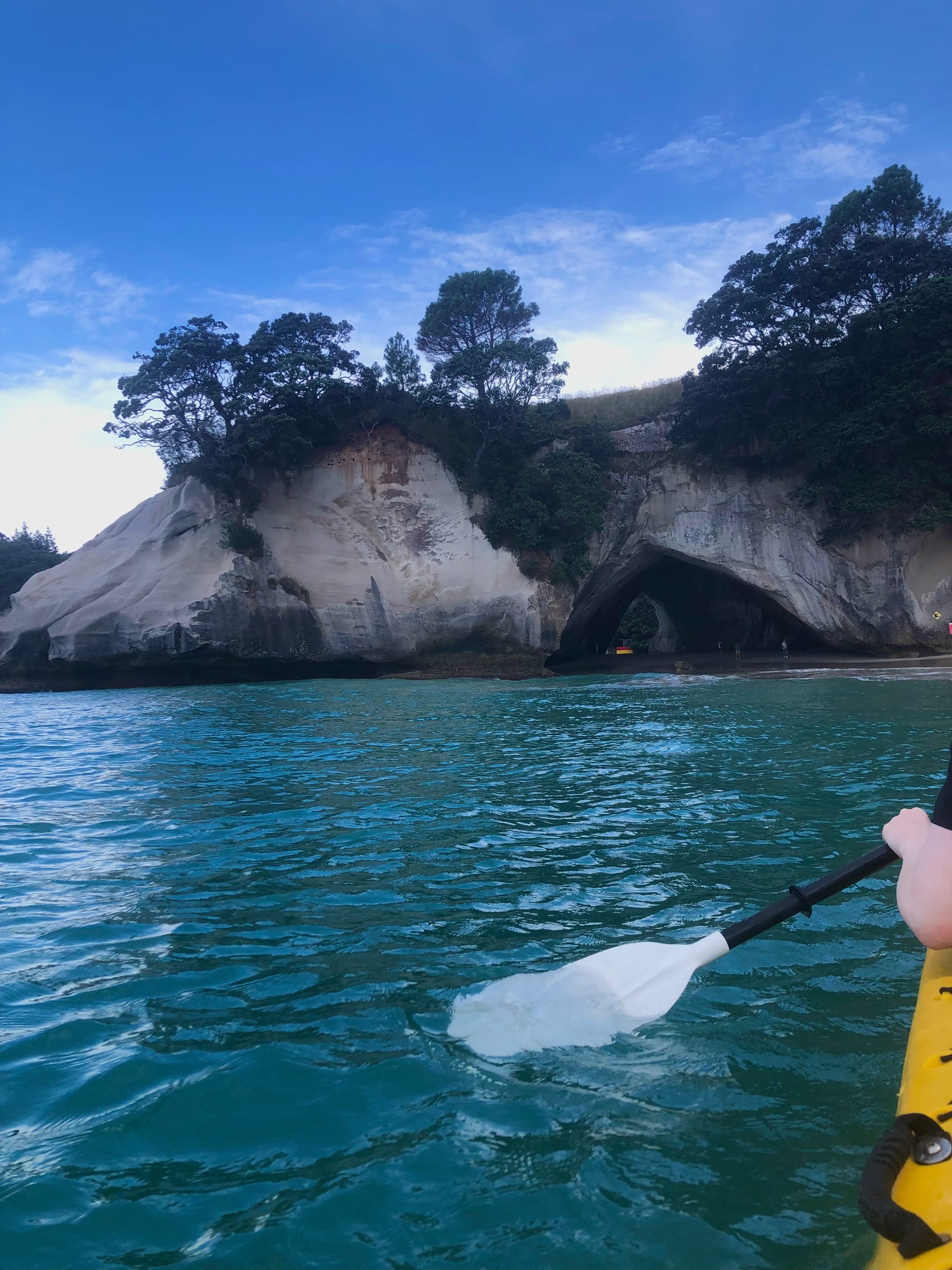 Der erste Stop ist eine kleines sehr ländlich gelegenes Hostel am Hot Water Beach gewesen. Ich habe dort auch schon meine erste Aktivität gebucht: Kajak fahren. Schon kurz nach der Ankunft haben wir uns getroffen und sind zu einem kleinen Strandabteil gefahren, wo uns alles erklärt wurde und das Erlebnis ist wirklich toll gewesen. An dieser Küste befindet sich auch die bekannte Cathedral Cove, eine schön anzusehende Felsformation, daher ist die Tour echt gut gelungen. Zum Abschluss gabs noch einen selbst gemachten Cappuccino am Strand und das Abenteuer war komplett. Das eigentlich besondere aber am Hot Water Beach ist, wieder Name schon sagt, der Strand. Dort befinden sich nämlich heiße Quellen direkt unterm Sand, sodass man sich selbst kleine Pools bauen kann und auf den Pazifik blicken kann. Leider hat die Kajaktour bis ca. 17.00 gedauert und die beste Uhrzeit für den Strand wäre um 16.00 gewesen, daher habe ich das verpasst. Nichtsdestotrotz bin ich da noch etwas spazieren gegangen und habe mir den wunderschönen Strand angesehen und den Weg vom Strand zum Hostel eingeprägt, da ein paar andere und ich am nächsten Tag um 4.30 aufgestanden sind. Um 5.00 Uhr morgens sollte nämlich wieder eine gute Zeit für die heissen Quellen sein und das war sie auch. Der Sand über der Quelle war sogar so heiß, dass ich mir leicht die Füße verbrannt habe. Aber das ist es mir total wer gewesen. Zurück im Hostel wurde geduscht und schon ging es weiter nach Waitomo.