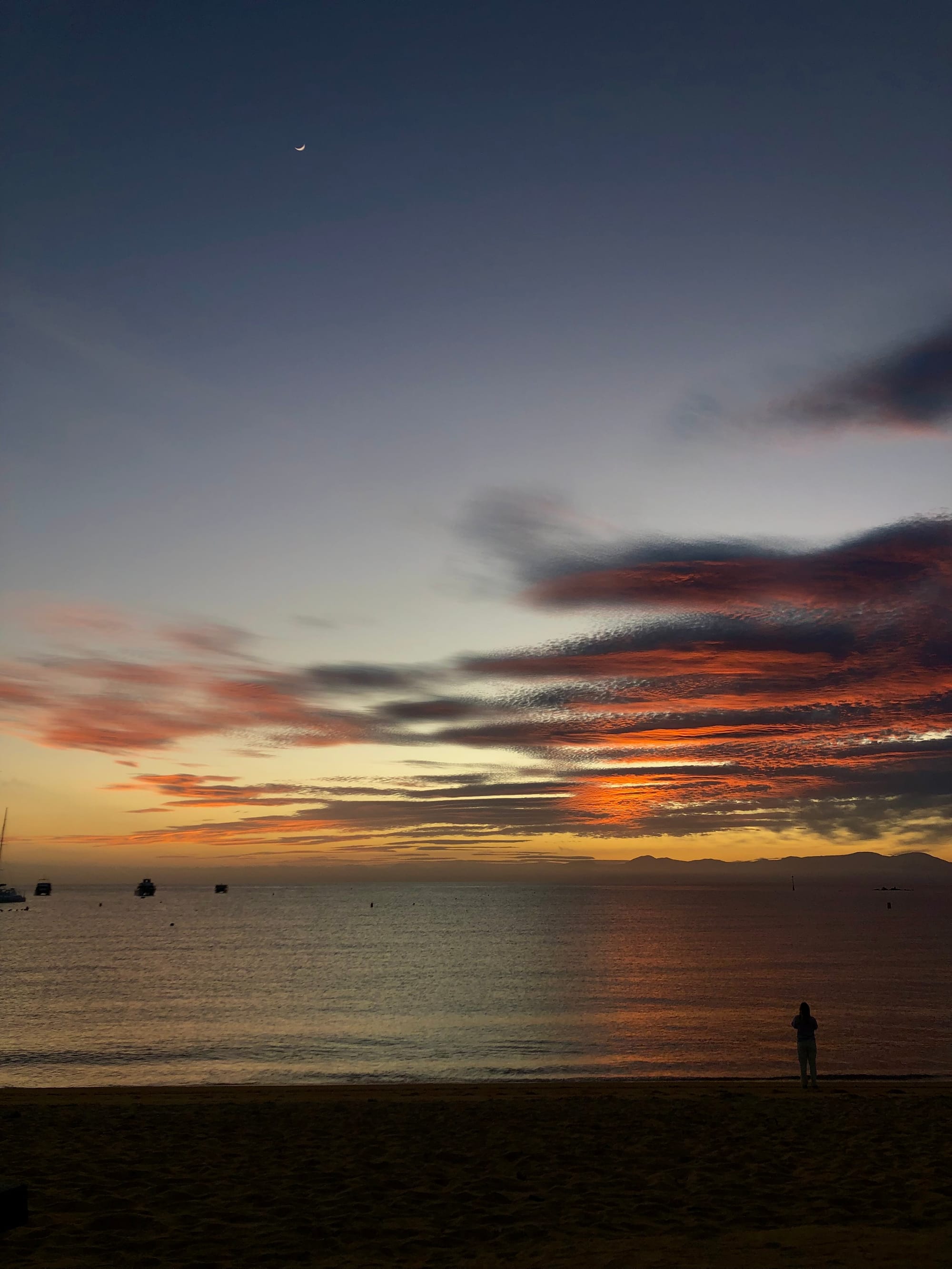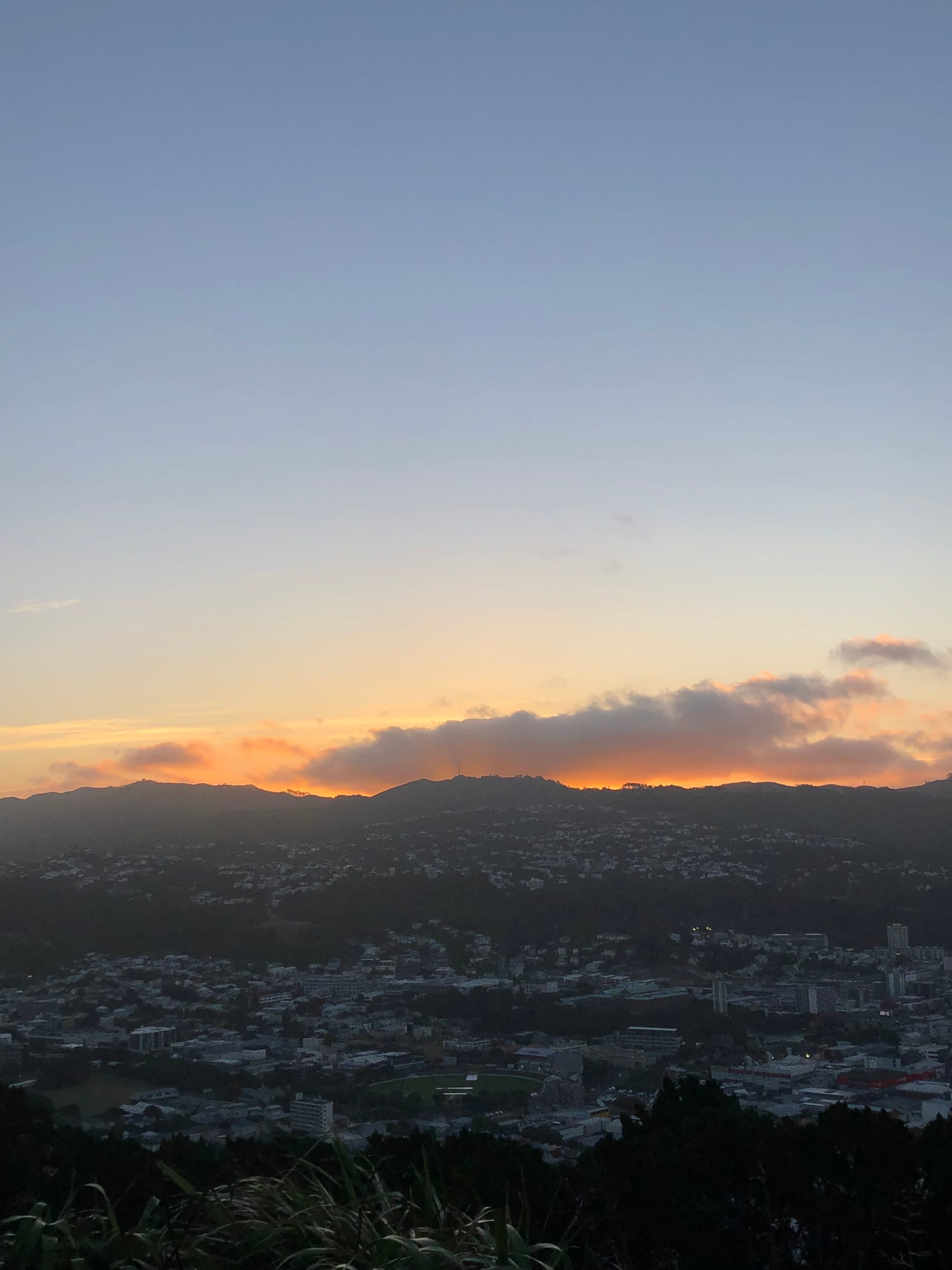 The next morning, around 10:00, I headed to the beach and spent some time reading there. Unfortunately, I lost track of time a bit, so I ended up with a sunburn in certain spots. But it wasn't too bad. I then went shopping a bit and walked along the beach promenade - which is beautiful and kilometers long in Wellington - until I walked back up Mount Victoria for the sunset. It was a nice ending.